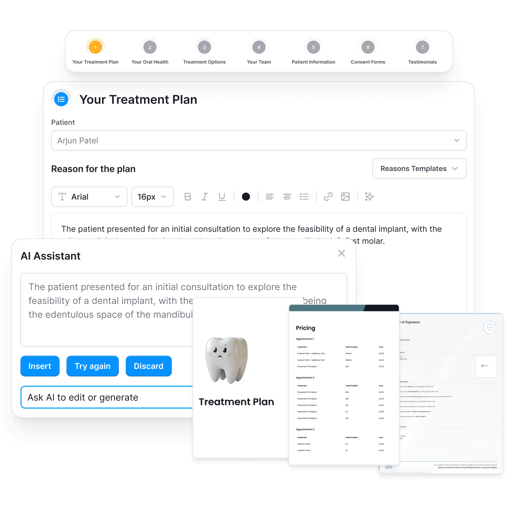 UPOD Medical’s treatment plans are tailored to each patient, ensuring full compliance with GDC standards. They enable fast, clear, and watertight consent so patients fully understand their care while practices stay protected.