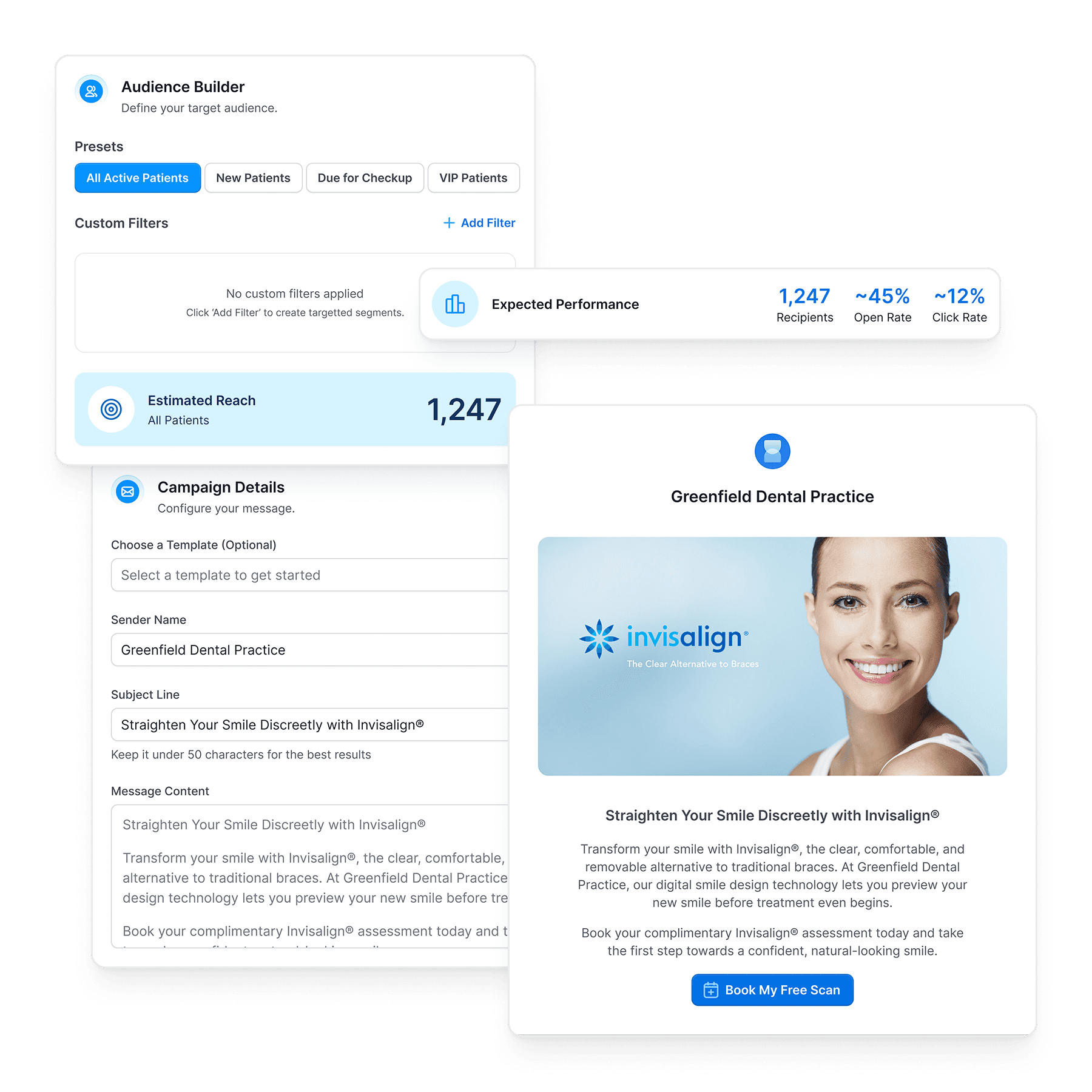 UPOD combines recalls with marketing campaigns to make reminders more engaging. Educational content and loyalty messaging help patients understand the value of regular visits.