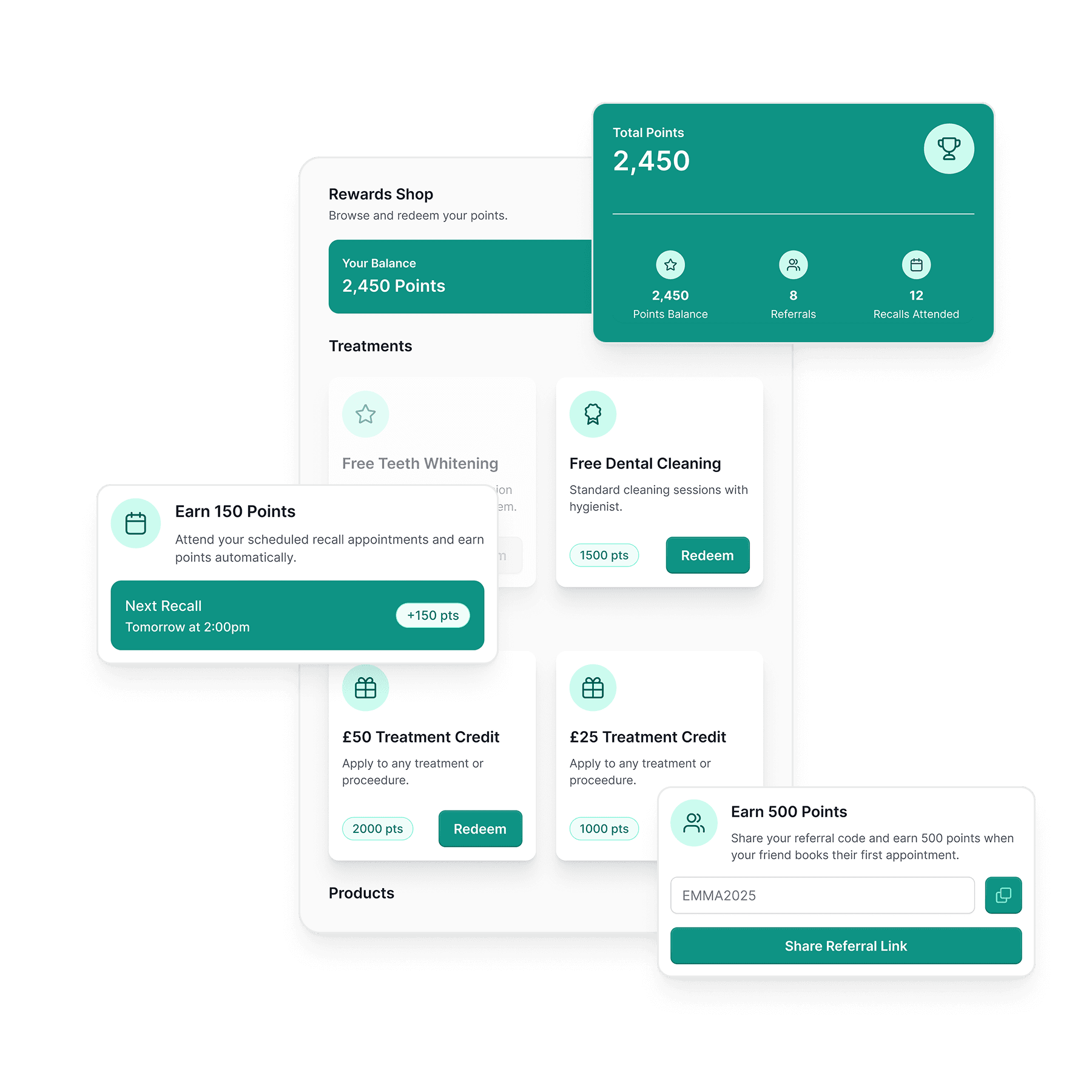 Inbuilt rewards and referrals to encourage loyalty and growth