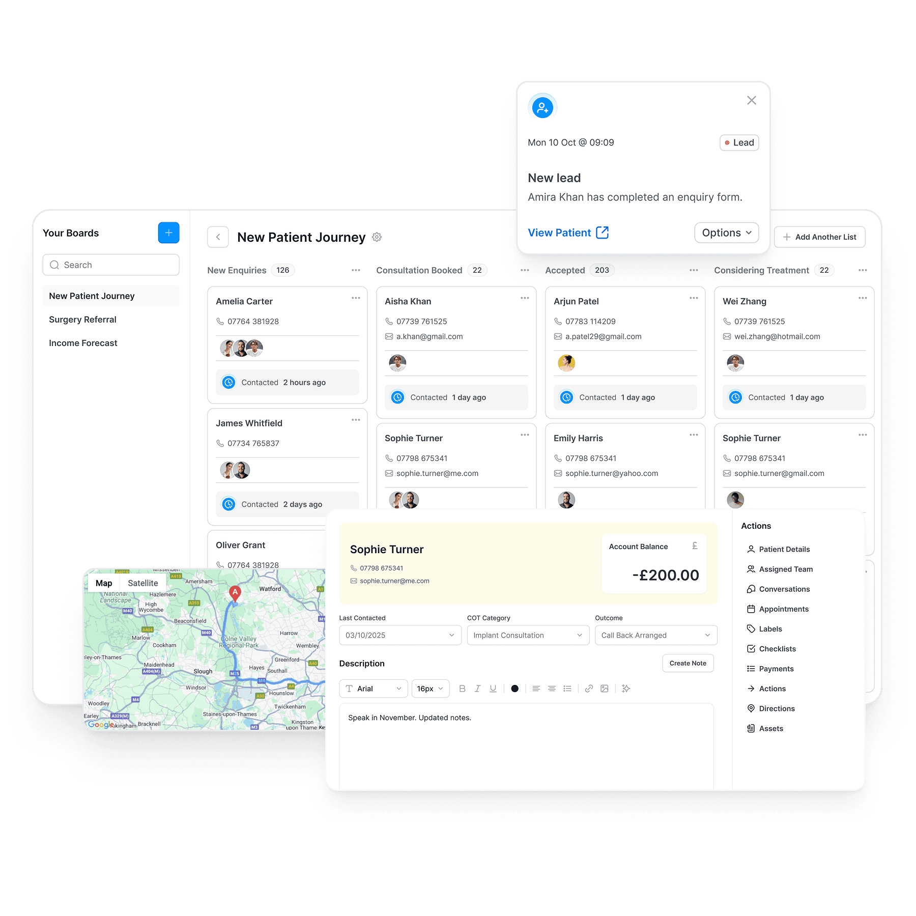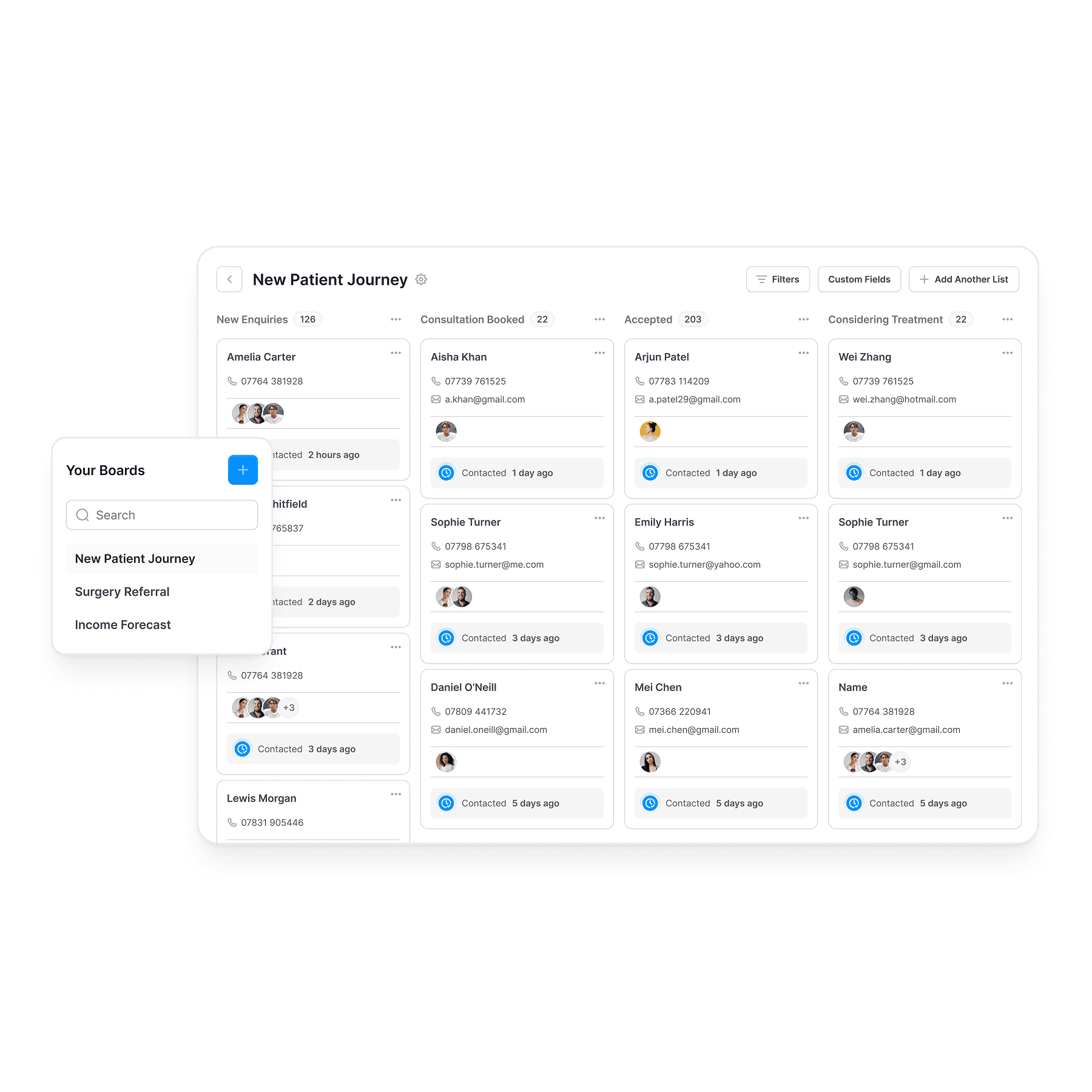 UPOD’s healthcare-grade CRM tracks every stage of the patient journey, from first enquiry to lifelong care. It centralises patient information, ensuring no lead or opportunity is ever lost.
